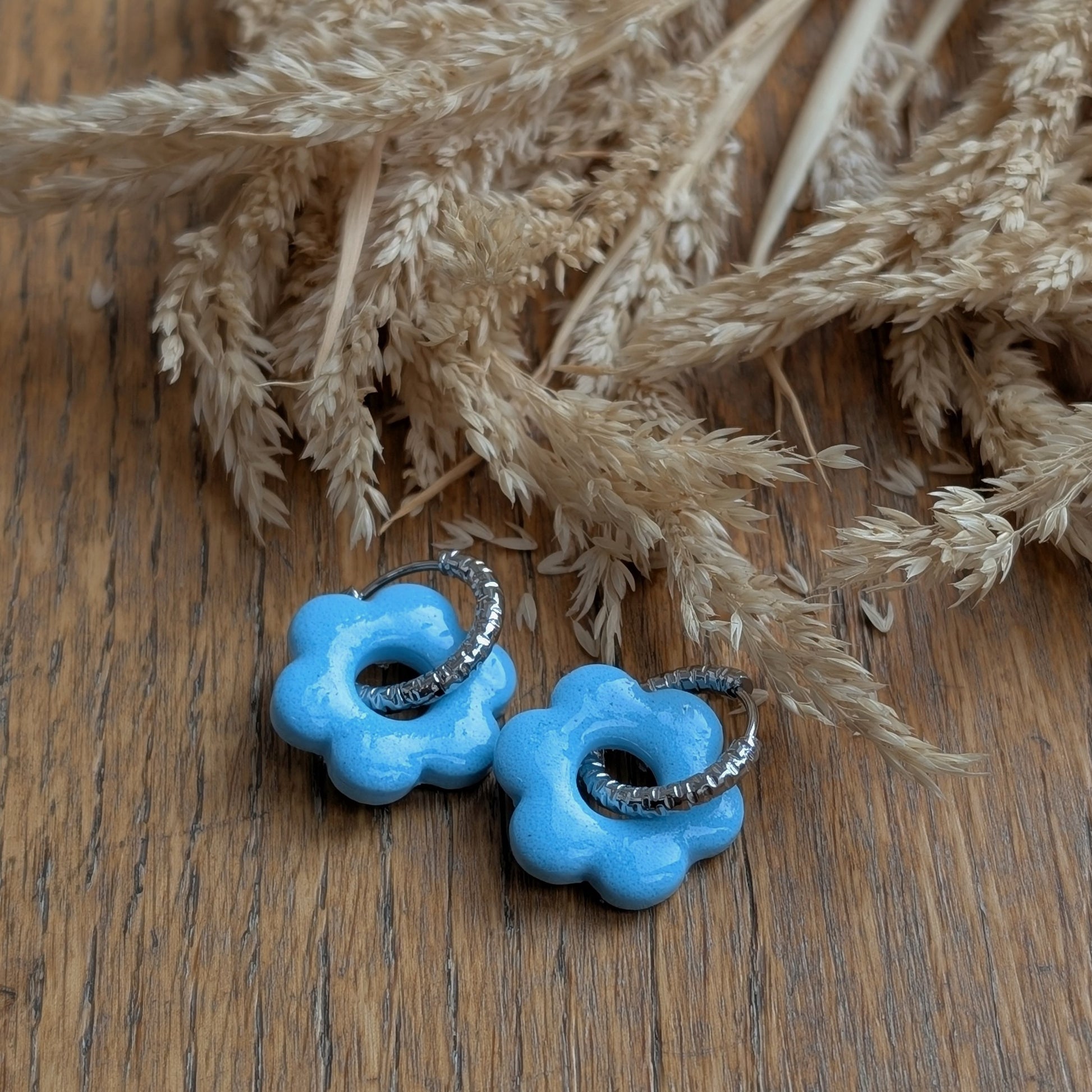 Laissez-vous charmer par ces créoles en acier inoxydable (or ou argent), sublimées par de délicates pampilles en forme de fleur, entièrement façonnées à la main en pâte polymère, puis résinées pour un éclat raffiné et une finition durable.