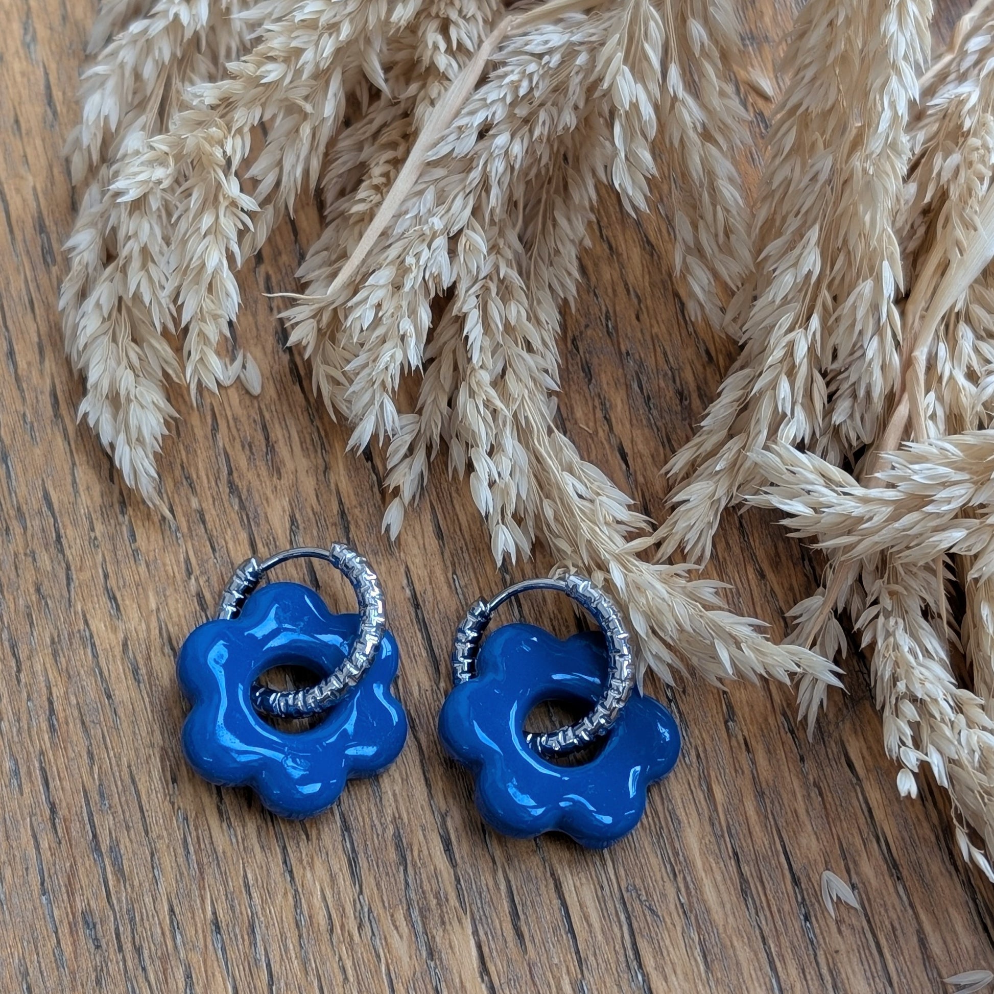 Laissez-vous charmer par ces créoles en acier inoxydable (or ou argent), sublimées par de délicates pampilles en forme de fleur, entièrement façonnées à la main en pâte polymère, puis résinées pour un éclat raffiné et une finition durable.