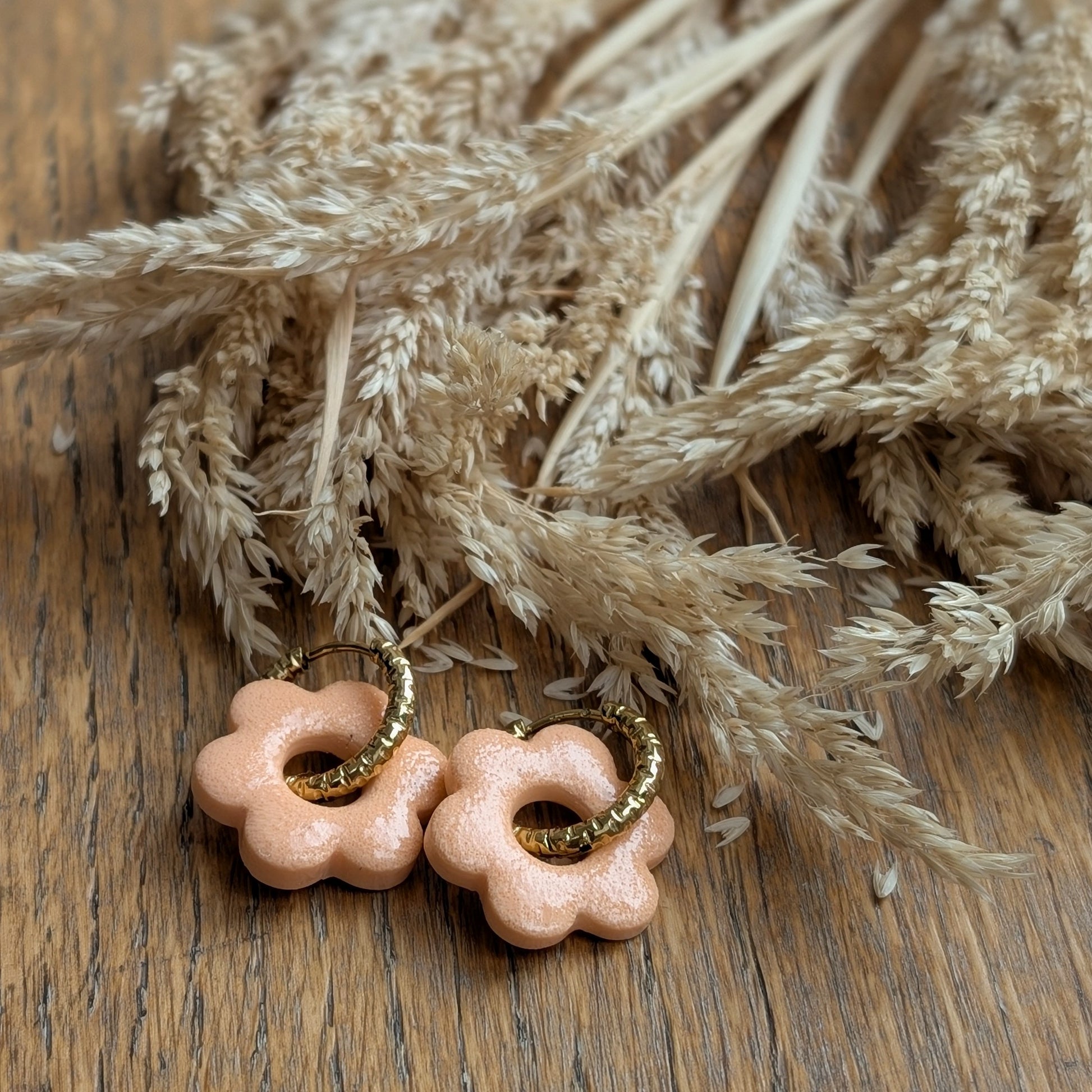 Laissez-vous charmer par ces créoles en acier inoxydable (or ou argent), sublimées par de délicates pampilles en forme de fleur, entièrement façonnées à la main en pâte polymère, puis résinées pour un éclat raffiné et une finition durable.