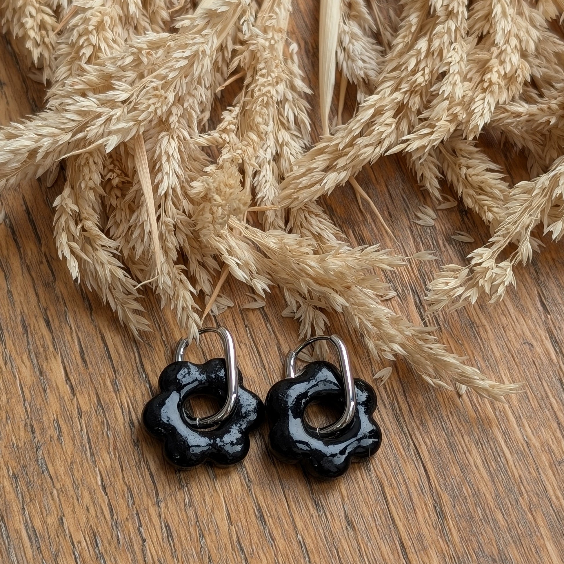 Laissez-vous charmer par ces créoles en acier inoxydable (or ou argent), sublimées par de délicates pampilles en forme de fleur, entièrement façonnées à la main en pâte polymère, puis résinées pour un éclat raffiné et une finition durable.