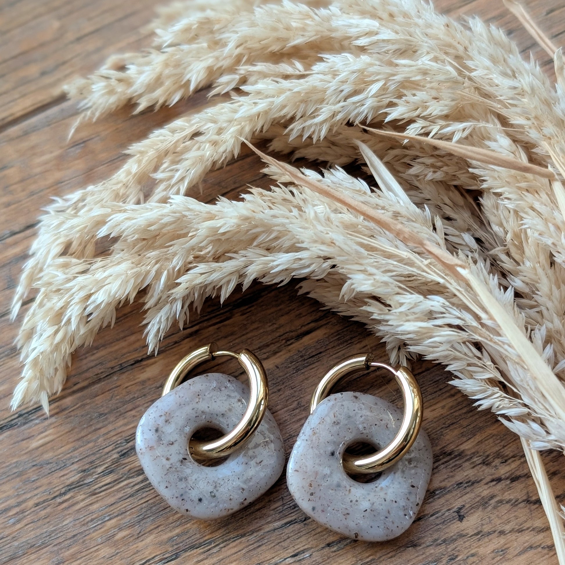 Ajoutez une touche de nature et d’élégance à votre style avec ces magnifiques créoles en acier inoxydable (or ou argent). Chaque paire est ornée de pampilles uniques interchangeables, façonnées à la main en pâte polymère puis résinées pour un fini brillant et durable.